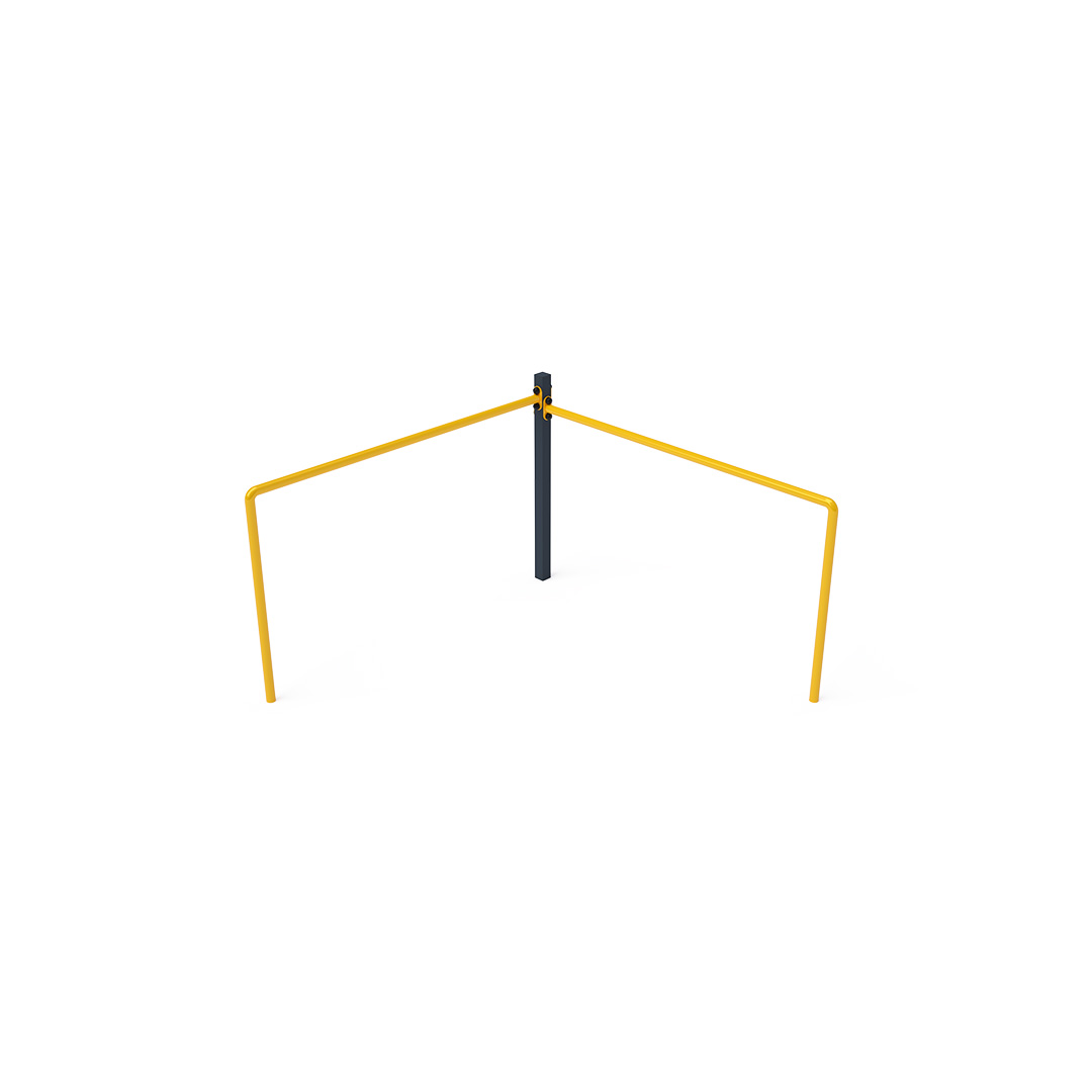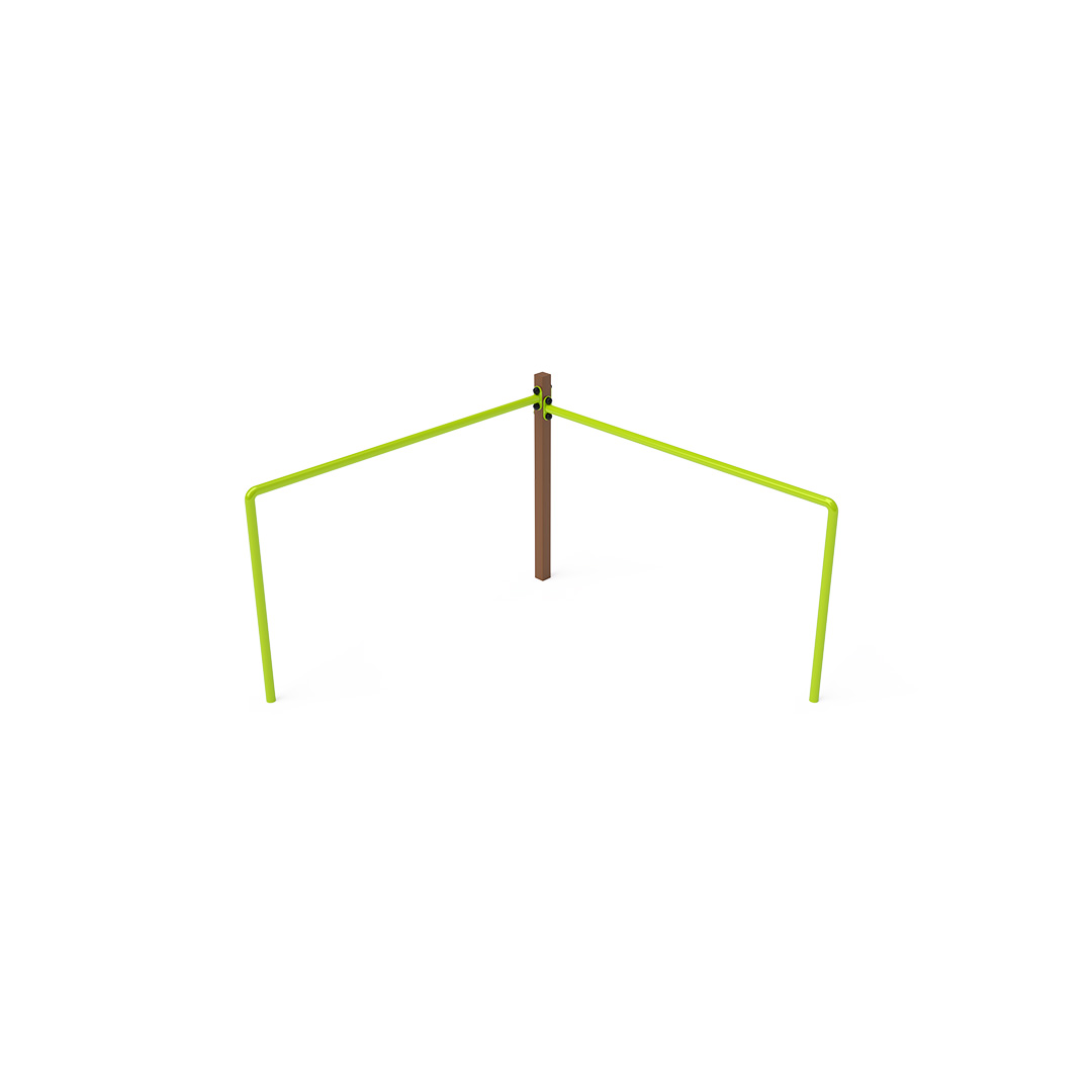 Bezúdržbová balančná dvojitá hrazda je herným prvkom, vďaka ktorému deti trénujú svoju silu, kondíciu a obratnosť. Každá hrazda ma inú výšku, aby sa mohli hrať väčšie aj menšie deti. Vyrobená je zo žiarovo zinkovanej ocele, ktorá je upravená práškovou vypaľovanou farbou. Spojovacie materiály sú nerezové a sú chránené krytkami pre zvýšenie ich životnosti a bezpečnosti. Ako dopadovú plochu je možné použiť trávnatý povrch, odporúčame však použiť zatrávňovaciu rohož.
