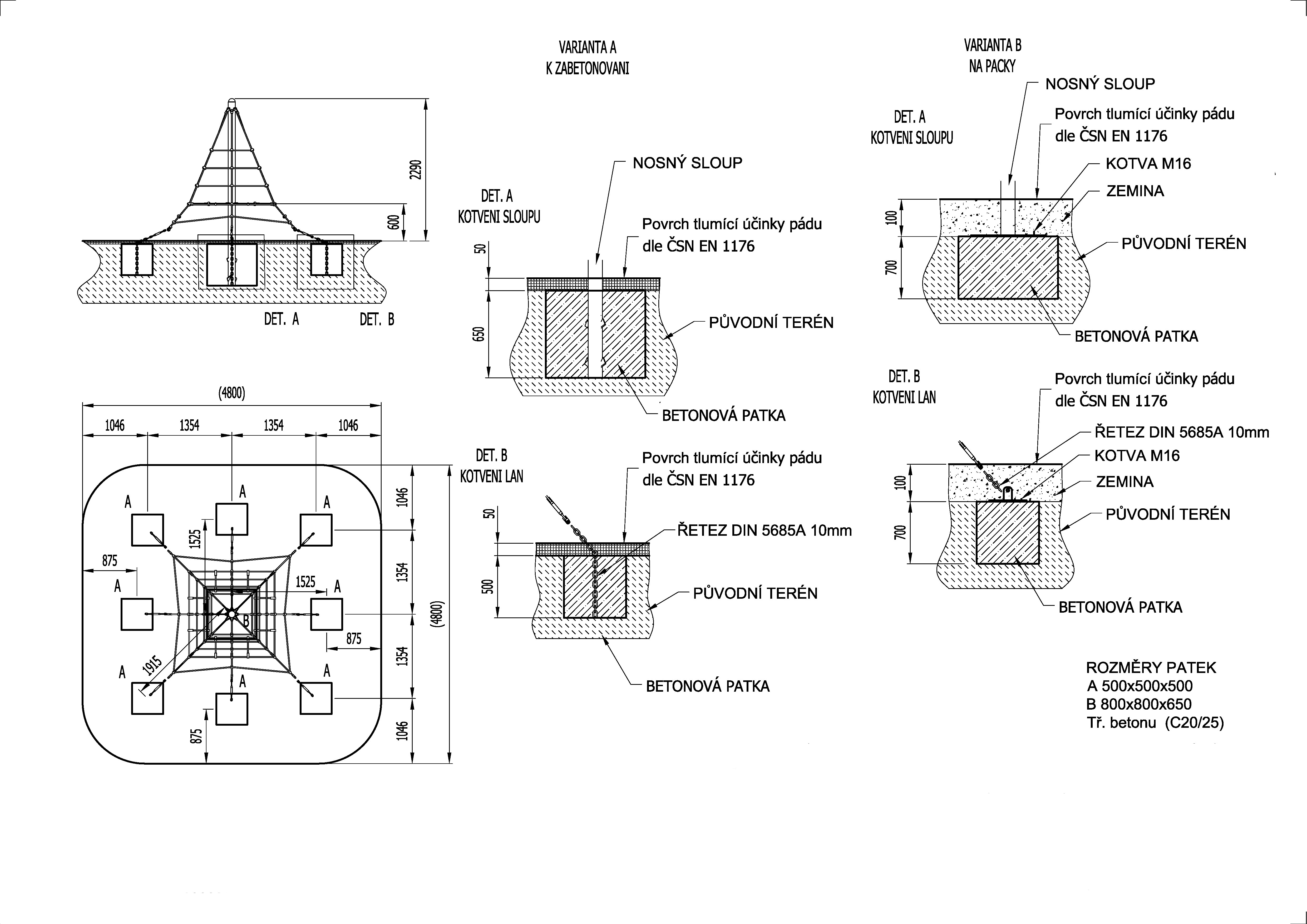 Dopadová plocha: 4,8 × 4,8 m (v zmysle STN EN 1176-1)