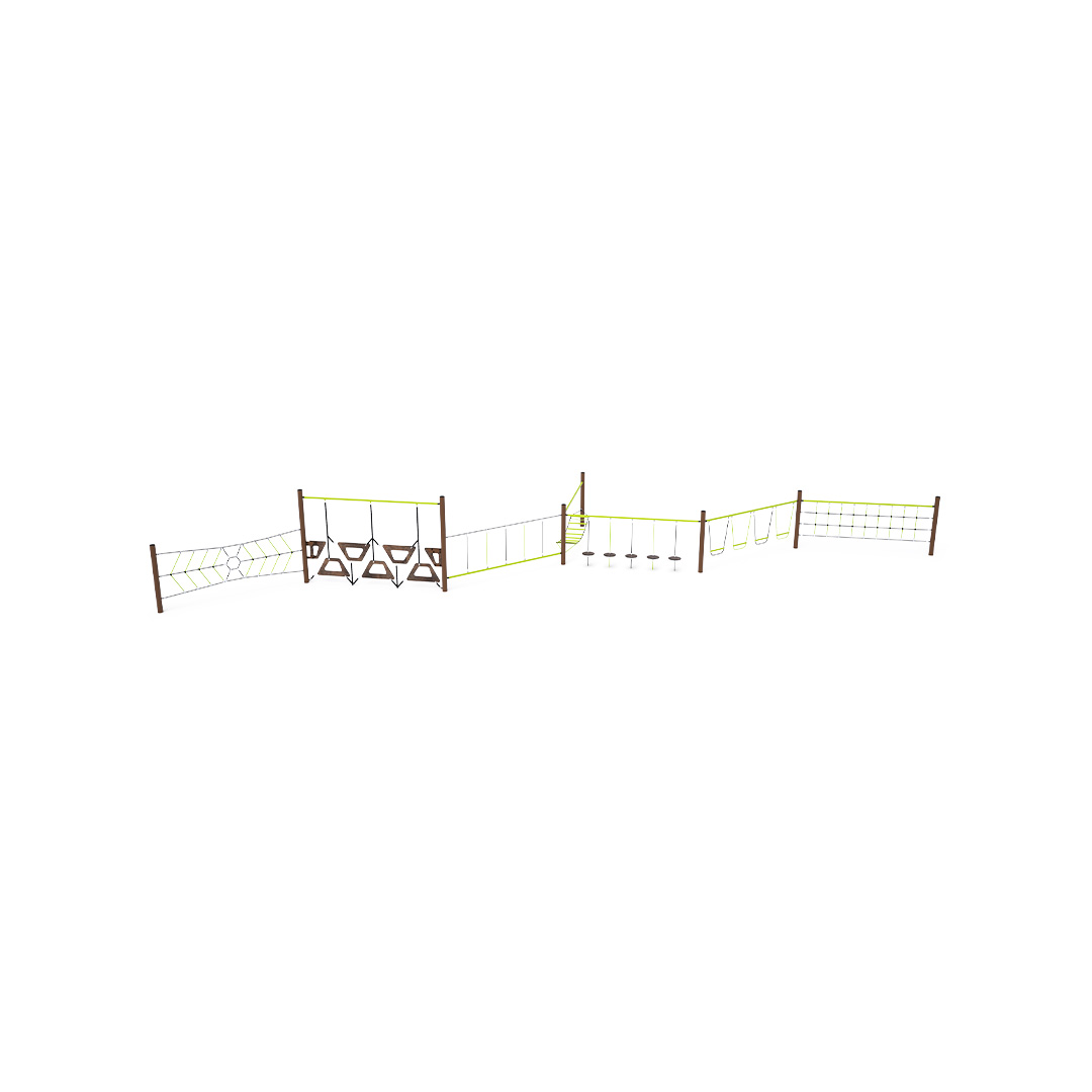 Opičia dráha vytvorená kombináciou siedmych častí: lanová sieť, zvislo zavesené stúpačky, visiace balančné kamene, horizontálna sieť so stúpačkami, rúčkovací segment, lichobežníková stena a zvislá pavúčia sieť. Herný prvok je vyrobený zo zinkovanej ocele s kvalitnou povrchovou úpravou- práškovým lakovaním, spoje sú nerezové a zakryté plastovými krytkami pre zvýšenie bezpečnosti a životnosti spojov. Laná sú vyrobené z polyesterových vlákien s oceľovým jadrom, ktoré sú vinuté okolo stredu. Táto konštrukcia lana zvyšuje jeho pevnosť a odolnosť proti mechanickému namáhaniu. Samotný polyester má veľa kladných vlastností. Je odolný voči mikroorganizmom, poveternostným vplyvom, rýchlo schne po daždi, je stálofarebný a vyznačuje sa vysokou pevnosťou.