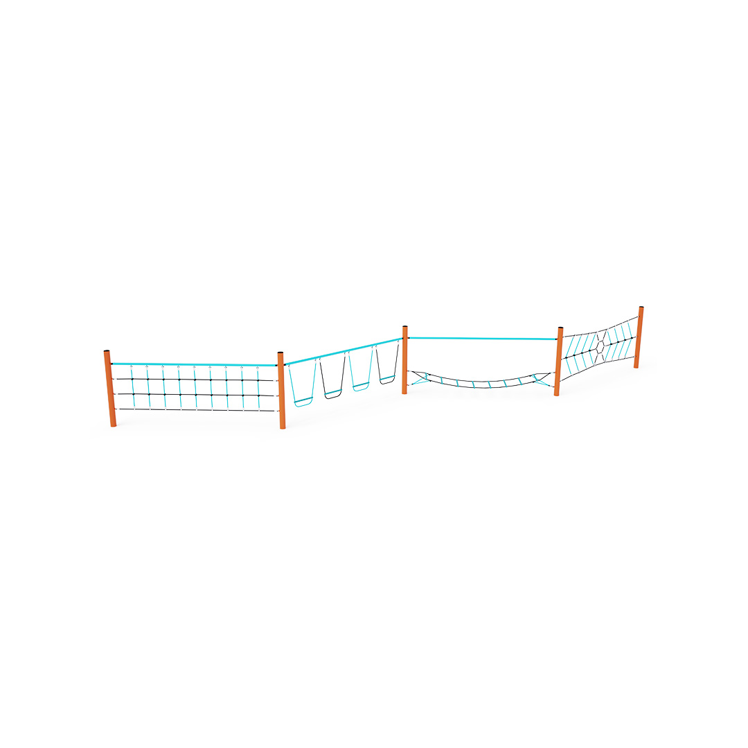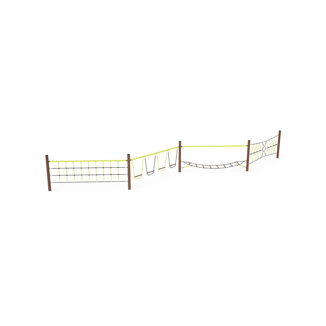 Opičia dráha vytvorená kombináciou štyroch častí. Časť vytvorená zvislou lanovou pavúčou sieťou, časť vytvorená horizontálnou “visiacou“ sieťou zabaví deti svojou vratkosťou, časť so zvislo zavesenými stupačkami a časť vytvorená zvislou lanovou sieťou preverí silu rúk každého dieťaťa. Herný prvok je vyrobený zo žiarovo zinkovanej ocele s kvalitnou povrchovou úpravou, spoje sú nerezové a zakryté plastovými krytkami pre zvýšenie bezpečnosti a životnosti spojov. Laná sú vyrobené z polyesterových vlákien, ktoré sú vinuté okolo stredu. Táto konštrukcia lana zvyšuje jeho pevnosť a odolnosť proti mechanickému namáhaniu. Samotný polyester má veľa kladných vlastností. Je odolný voči mikroorganizmom, poveternostným vplyvom, rýchlo schne po daždi, je stálofarebný a vyznačuje sa vysokou pevnosťou.