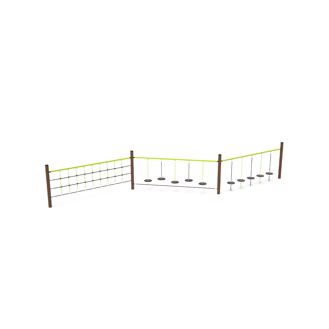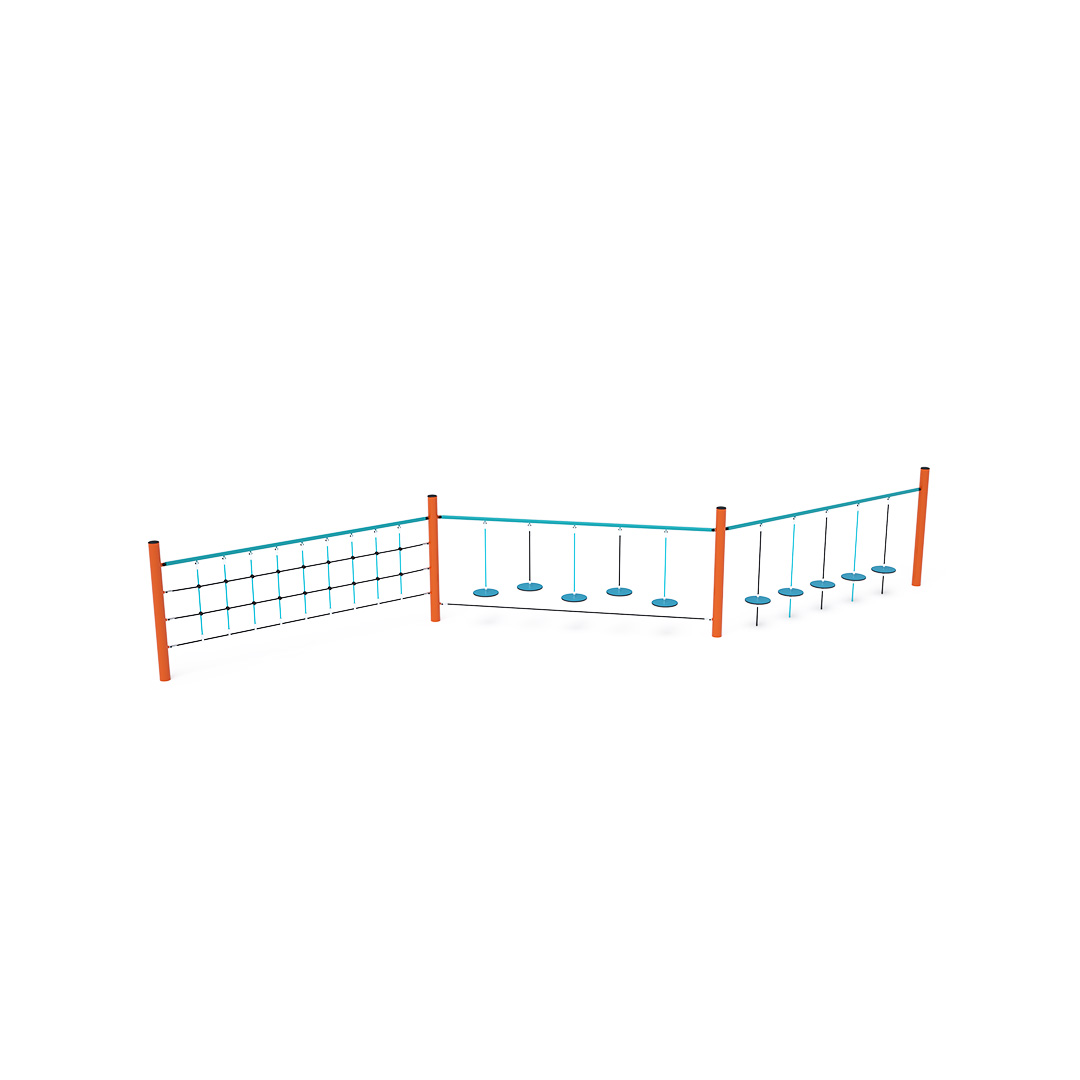 Opičia dráha vytvorená kombináciou troch častí. Prvá časť vytvorená vytvorená zvislo zavesenými stupačkami, druhá časť so zvislou lanovou sieťou preverí silu rúk každého dieťaťa. Tretia časť s visiacimi “kameňmi“ preverí schopnosť sústrediť sa a zároveň koordináciu celého tela. Prechádzať z jedného voľne visiaceho kameňa na ten nasledujúci nie je vôbec ľahké. Herný prvok je vyrobený zo žiarovo zinkovanej ocele s kvalitnou povrchovou úpravou, spoje sú nerezové a zakryté plastovými krytkami pre zvýšenie bezpečnosti a životnosti spojov. Laná sú vyrobené z polyesterových vlákien, ktoré sú vinuté okolo stredu. Táto konštrukcia lana zvyšuje jeho pevnosť a odolnosť proti mechanickému namáhaniu. Samotný polyester má veľa kladných vlastností. Je odolný voči mikroorganizmom, poveternostným vplyvom, rýchlo schne po daždi, je stálofarebný a vyznačuje sa vysokou pevnosťou.