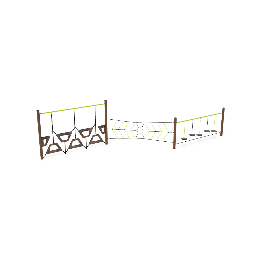Opičia dráha vytvorená kombináciou troch častí - lichobežníkovej steny, pavúčej siete a voľne zavesenými diskami. Prekonávanie tohto herného prvku je nie len zábava, ale aj námaha. Herný prvok je vyrobený zo zinkovanej ocele s kvalitnou povrchovou úpravou - práškovým lakovaním, spoje sú nerezové a zakryté plastovými krytkami pre zvýšenie bezpečnosti a životnosti spojov. Laná sú vyrobené z polyesterových vlákien s oceľovým jadrom, ktoré
