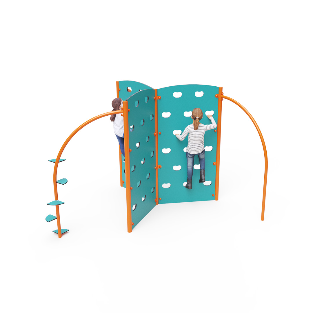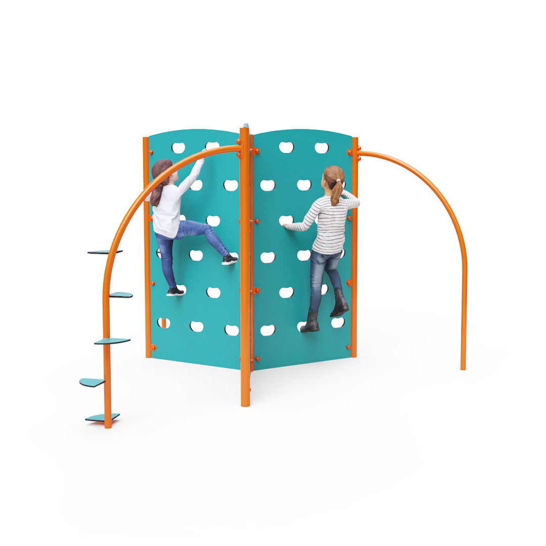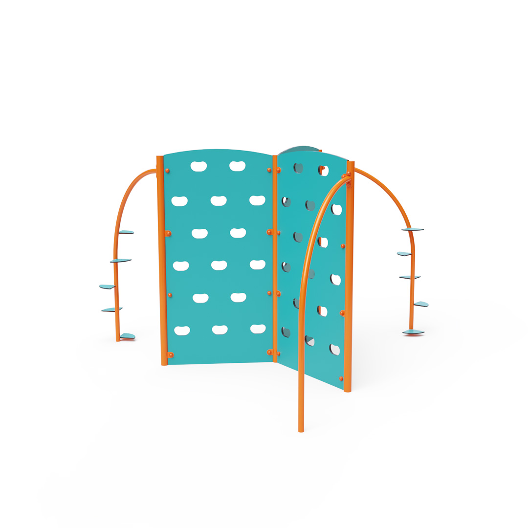 Trojitá lezecká obojstranná stena s lezeckými tyčami a lezeckými nášlapmi. Aj keď sa zdá, že tento herný prvok je pre mládež a na detské ihrisko sa príliš nehodí, deti lezecké steny milujú. Konštrukcia lezeckej veže je vyrobená zo zinkovanej ocele, ktorá je upravená práškovou vypaľovanou farbou. Navhrnutá je s ohľadom na dosiahnutie dlhej životnosti a bezpečnosti. Steny sú z HPL materiálu. Do steny sú vyrezané lezecké úchopy.