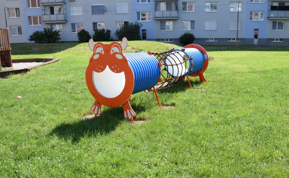 Na ihriskách na Mlynárskej a Čepenskej ulici pribudli tri nové prvky – tunelová zostava v podobe hrocha, prevažovacia hojdačka a kresliaca tabuľa s abecedou. Tieto komponenty dodala firma Veríme v Zábavu s.r.o.