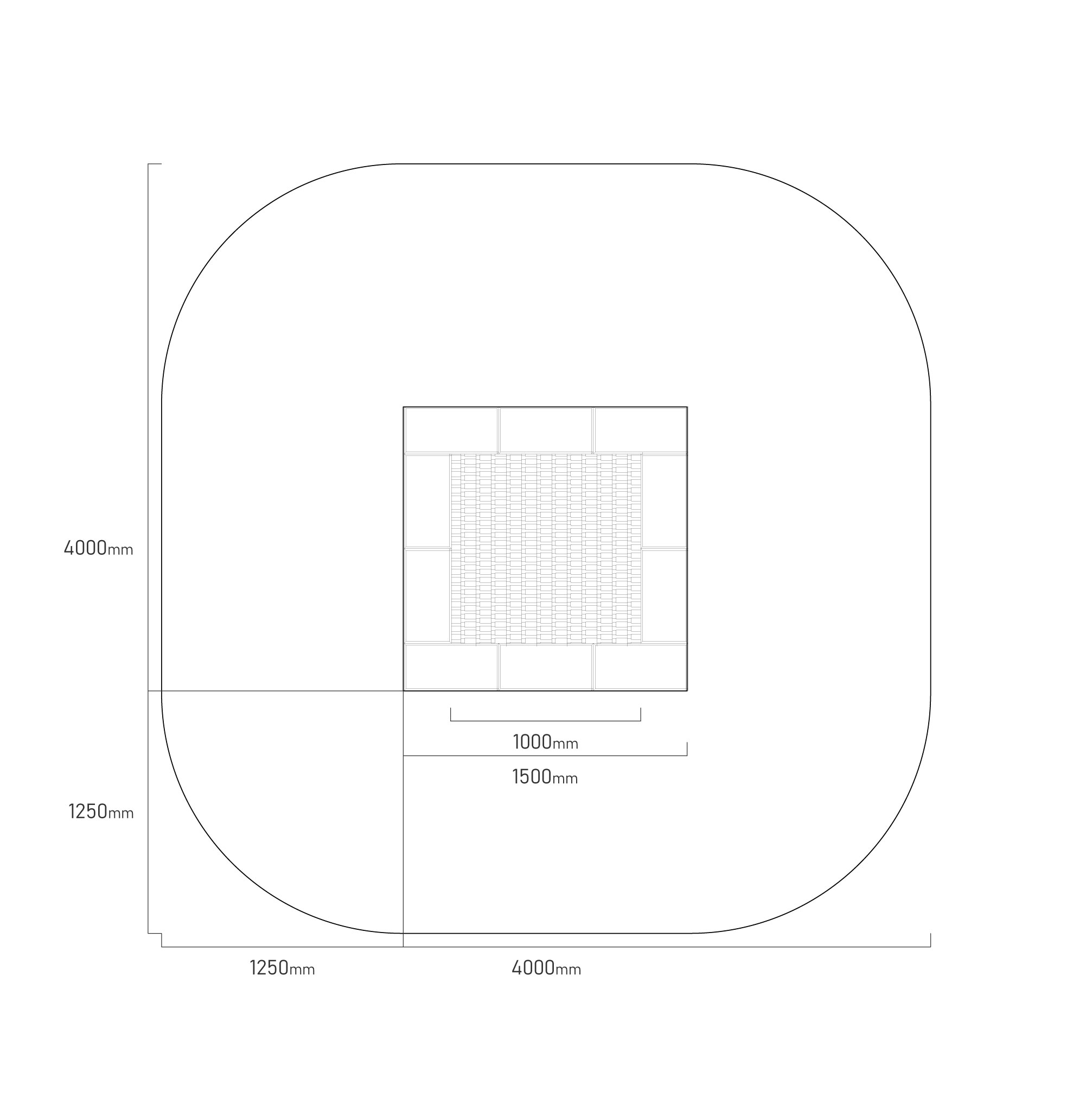 Vnútorné rozmery: 1,0 x 1,0 m (skákacia membrána)
