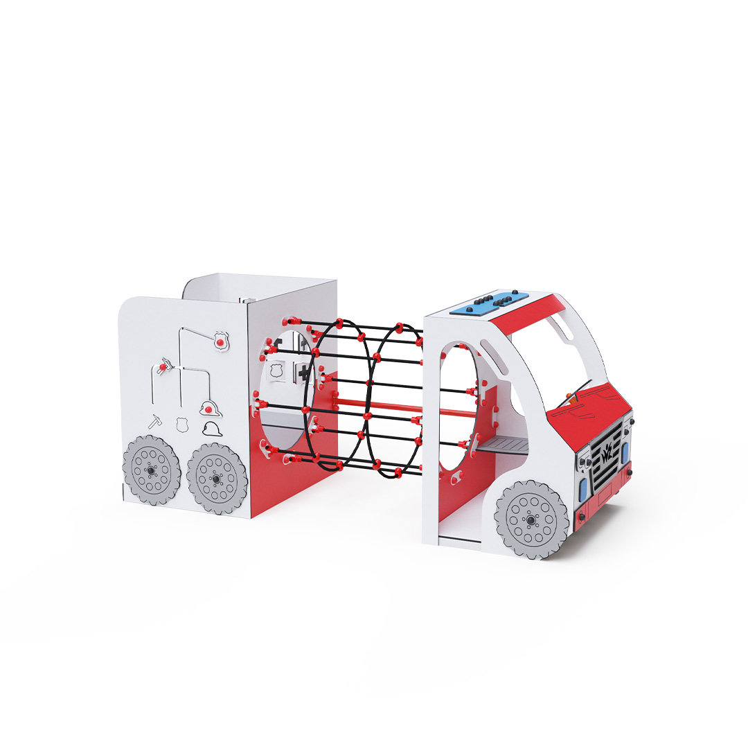 Dopravný prostriedok – Hasiči je ideálny tematický prvok pre rozvoj detskej fantázie a tímovej spolupráce, vďaka čomu je vhodný aj pre najmenšie deti. Otočný volant, piškvôrky a hru triedenie spolu s tematickými prvkami zintenzívňuje pocit z hry.