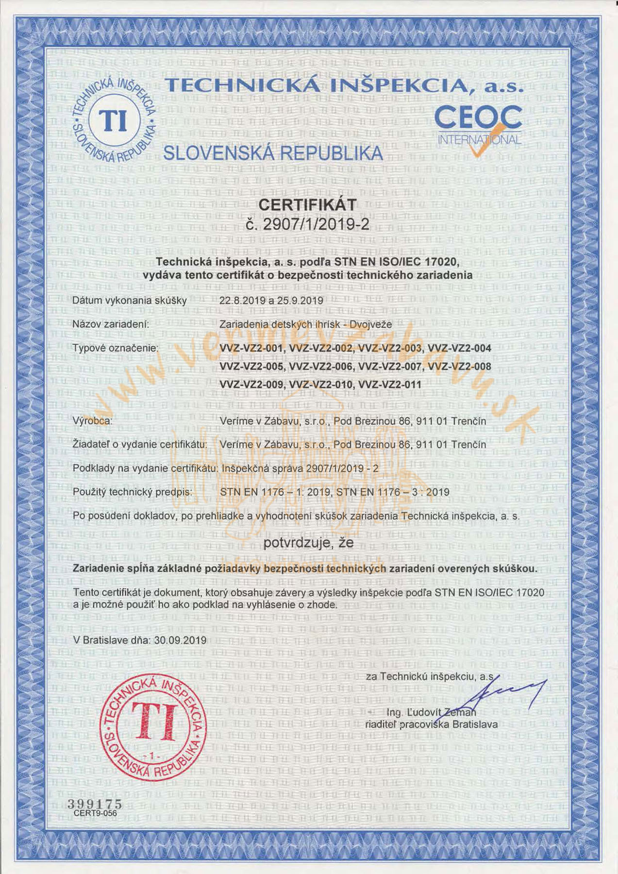 Všetky naše prvky v ponuke prešli kontrolou Technickej inšpekcie a.s., podľa príslušnej normy, čo dokazujú aj certifikáty ktoré môžete nájsť na webe pri každom produkte. Hoci sú všetky naše výrobky schválené Technickou inšpekciou a.s., najprísnejšími kontrolórmi sú pre nás tí, ktorí sa na cestu za zábavou vydajú – a nie sú to len deti.