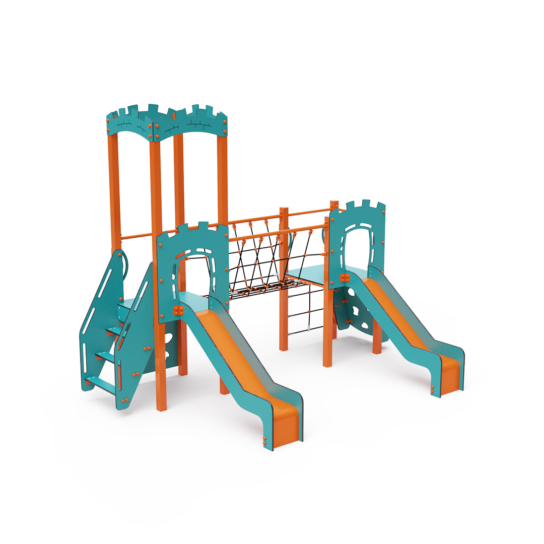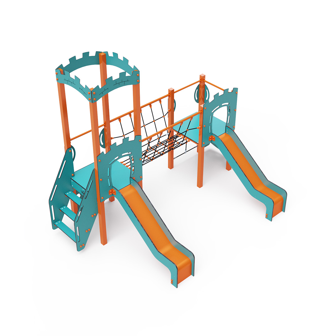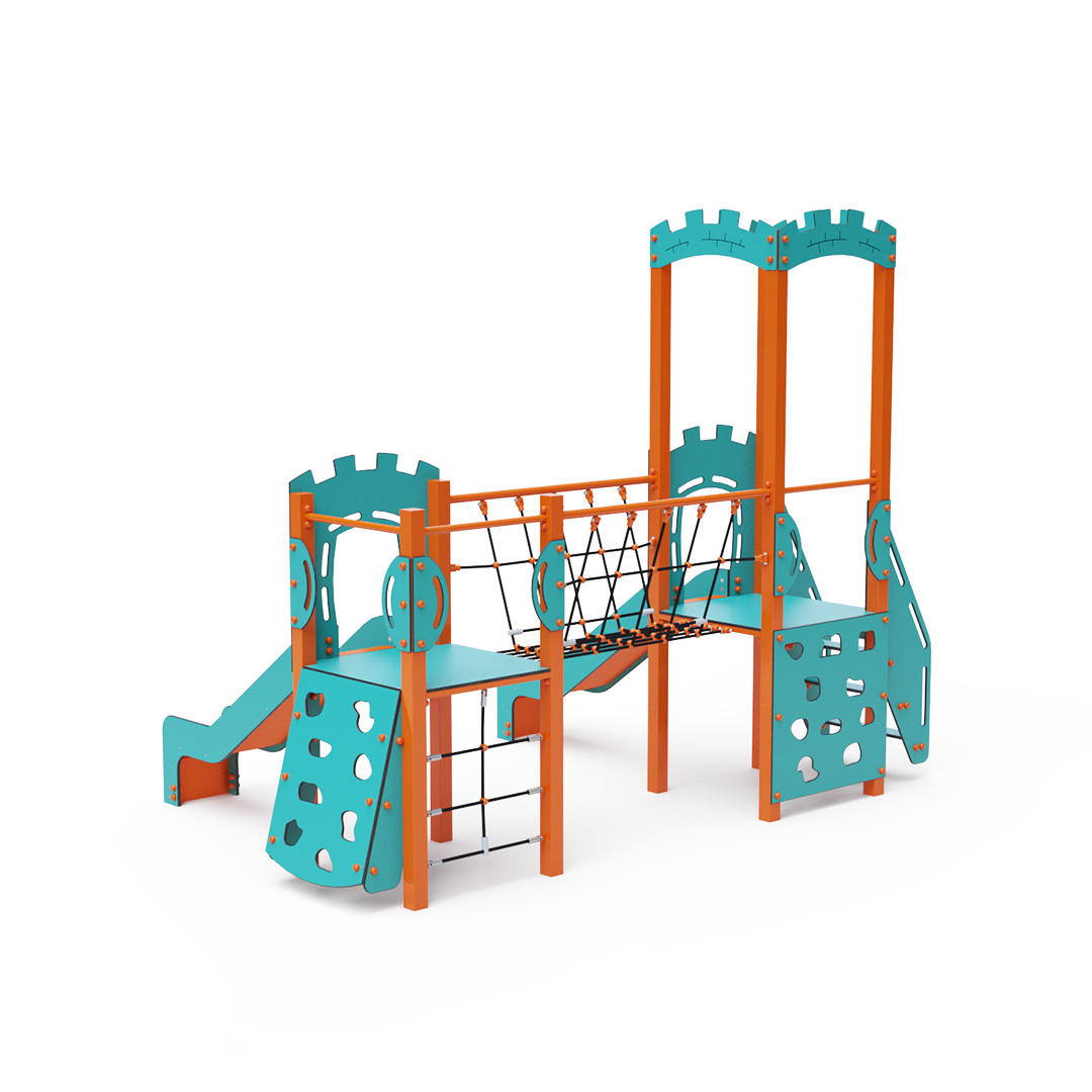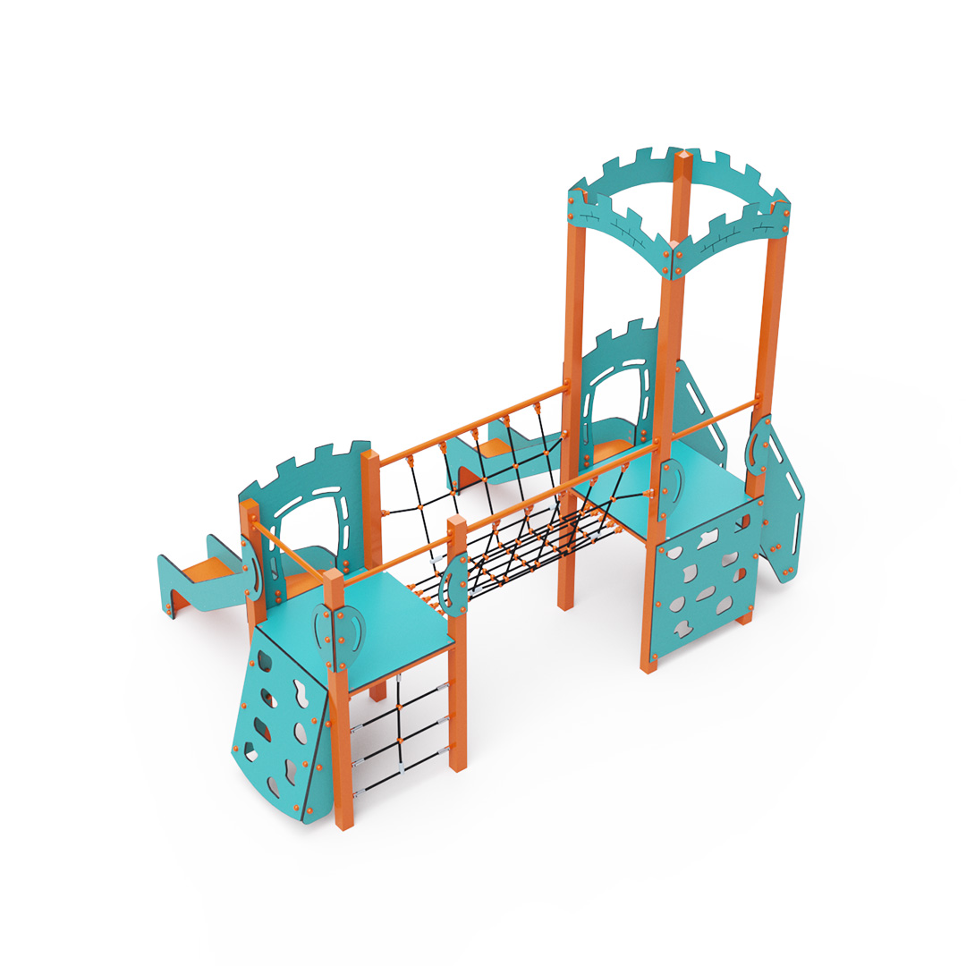 Na zostavu deti vylezú po schodíkoch, po šikmej alebo kolmej lezeckej stene s úchytmi alebo po lanovej sieti a dolu sa môžu spustiť po jednej z dvoch šmýkaliek. Tyrkysovo-oranžový dizajn už z diaľky láka ku hre. Oceľová konštrukcia je odolná voči poveternostným vplyvom vďaka žiarovému zinkovaniu a lakovaniu odolnou práškovou farbou. Použitý HPL materiál je chemicky odolný, odolný voči UV žiareniu - stálofarebný, netoxický, recyklovateľný a nelámavý. Nehrozí tak poranenie detí ostrými hranami alebo úlomkami. Laná sú vyrobené z polyesterových vlákien, ktoré sú vinuté okolo stredovej výstuže. Táto konštrukcia lana zvyšuje jeho pevnosť a odolnosť proti mechanickému namáhaniu. Samotný polyester je odolný voči mikroorganizmom, poveternostným vplyvom, rýchlo schne po daždi, je stálofarebný a vyznačuje sa vysokou pevnosťou. Všetky spoje sú nerezové a zakryté plastovými krytkami pre zvýšenie životnosti a bezpečnosti.