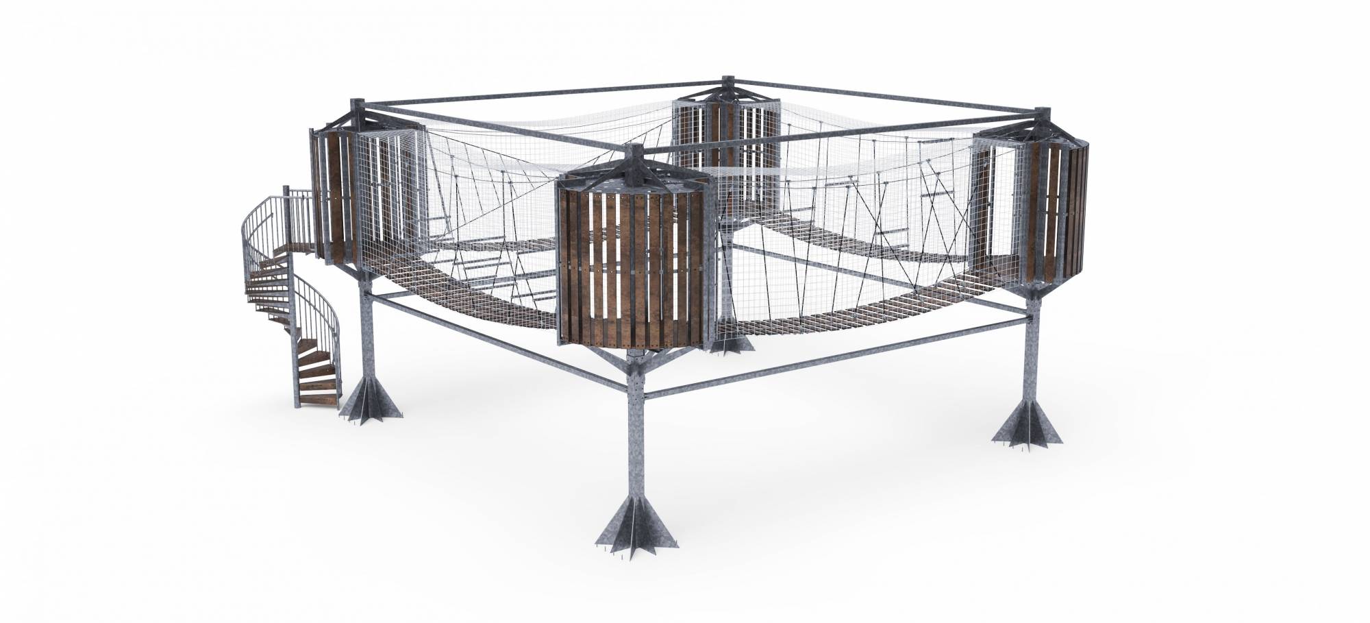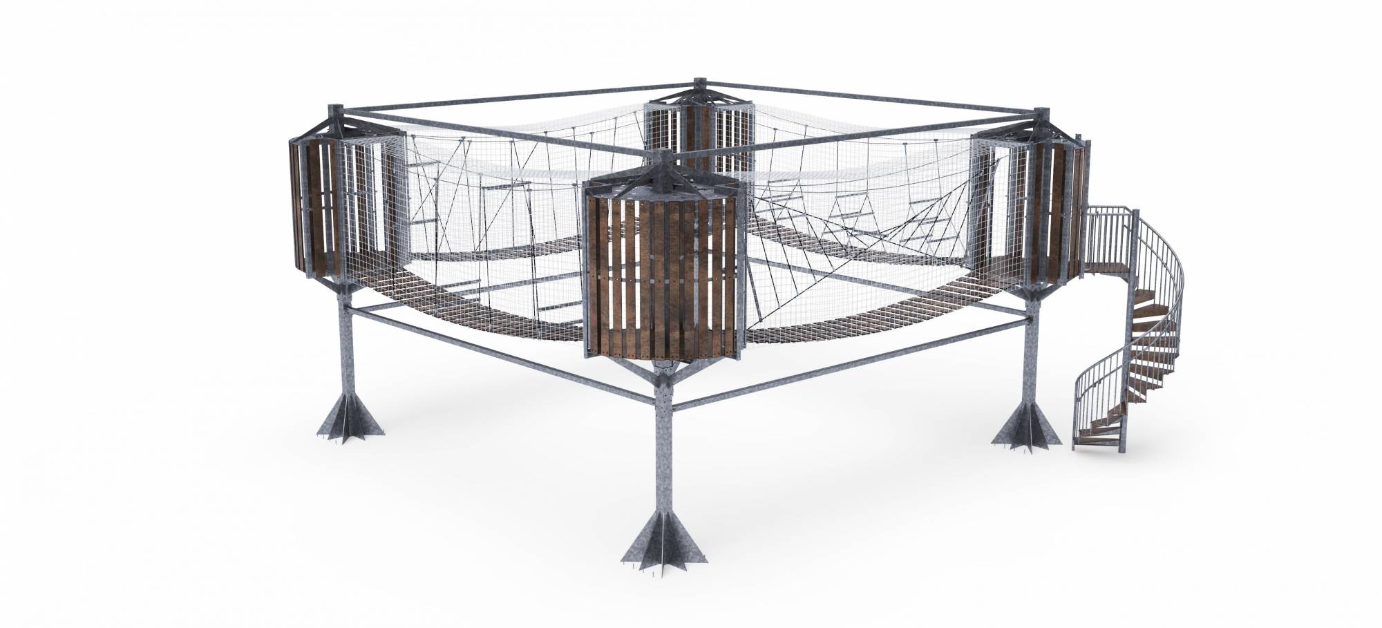 Podlahy vo výške 3 poskytujú výhľad na okolie a vysuté mosty s prekážkami zábavu pre každého kto sa na ne odváži vstúpiť. Podlahy, lamely a priečky sú vyrobené z HPL.
