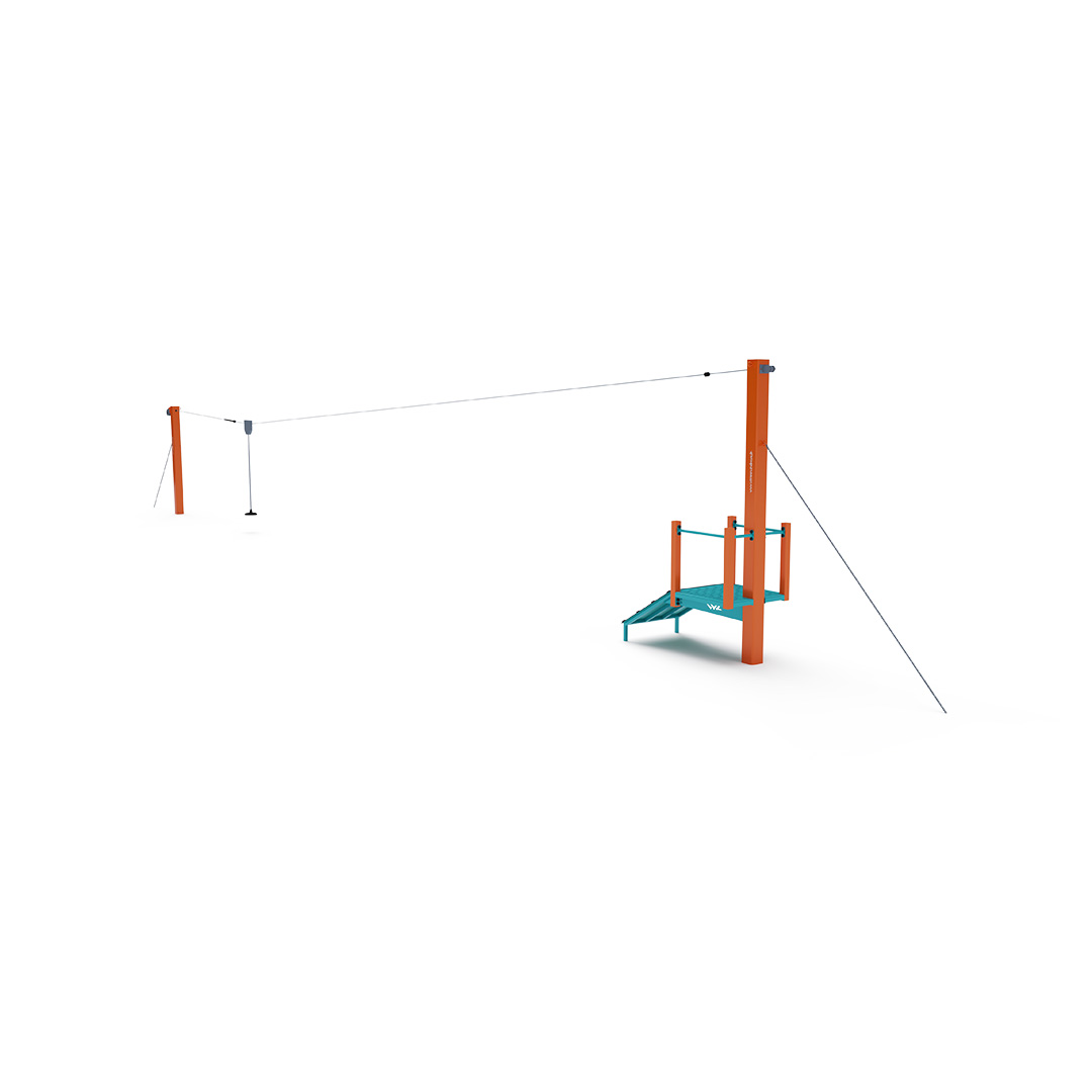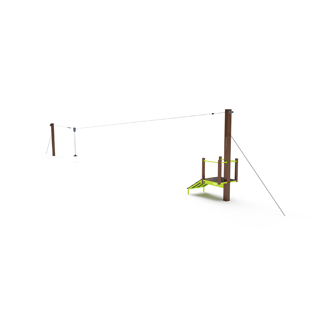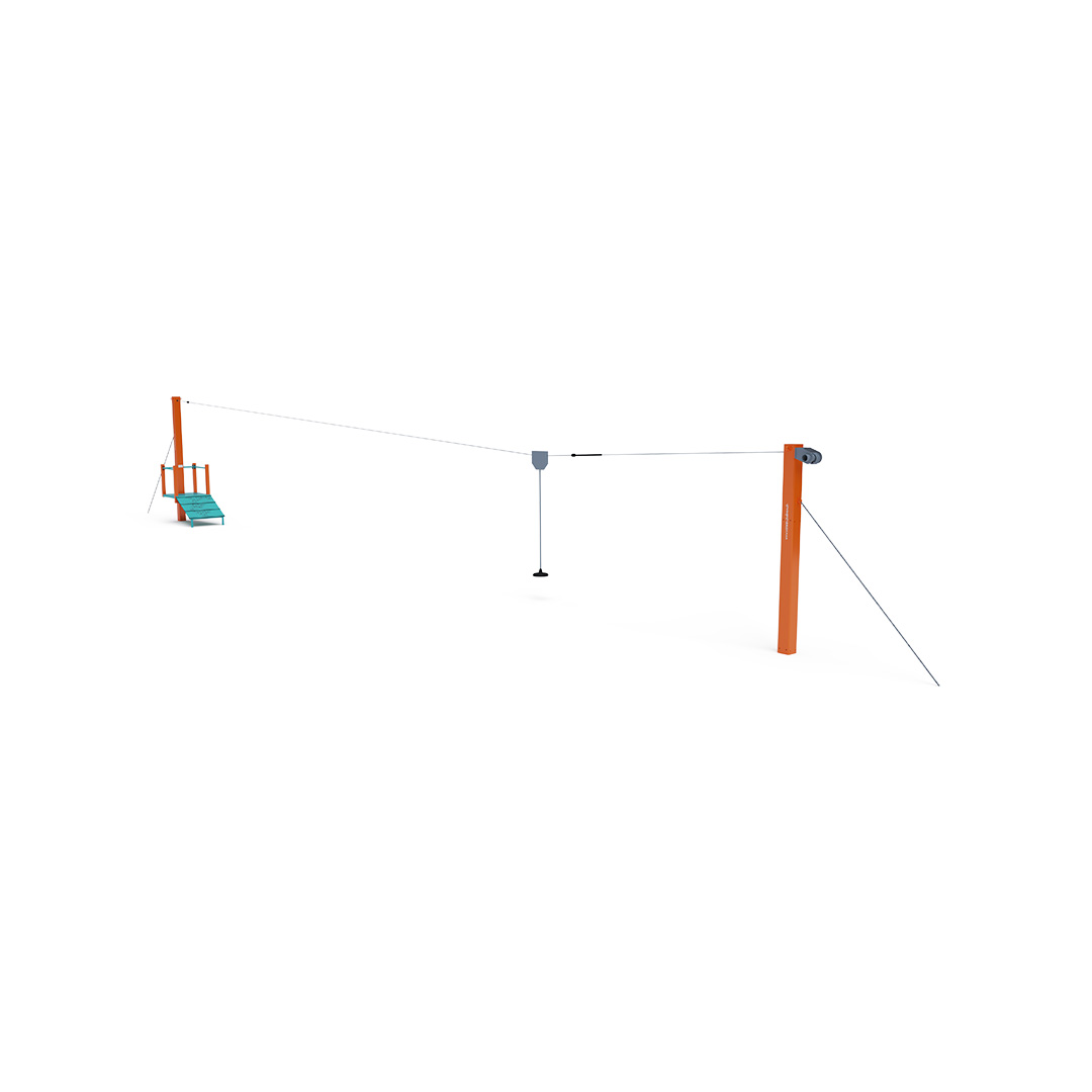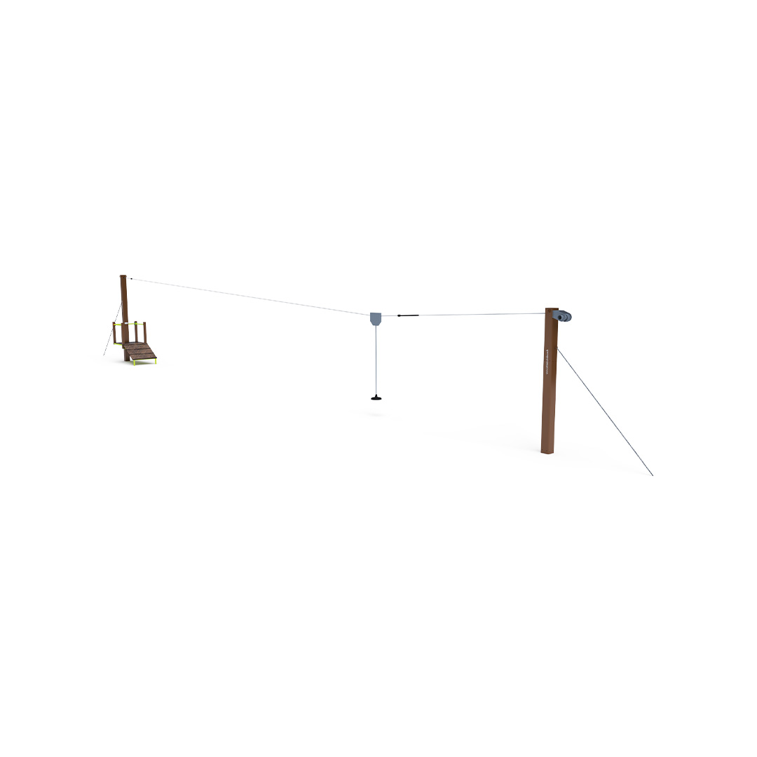 Jednodráhová lanovka s kladkou poskytne deťom zábavu vo forme “lietania” z jednej strany na druhú, keďže pri pohybe sedia s nohami vo vzduchu na sedáku. Detské ihrisko s lanovkou získa tým úplne iný rozmer. Herný prvok je vyrobený zo žiarovo zinkovanej ocele s kvalitnou povrchovou úpravou, spoje sú nerezové a zakryté plastovými krytkami pre zvýšenie bezpečnosti a životnosti spojov. Podlaha nástupných plošín je vyrobená z HPL materiálu.