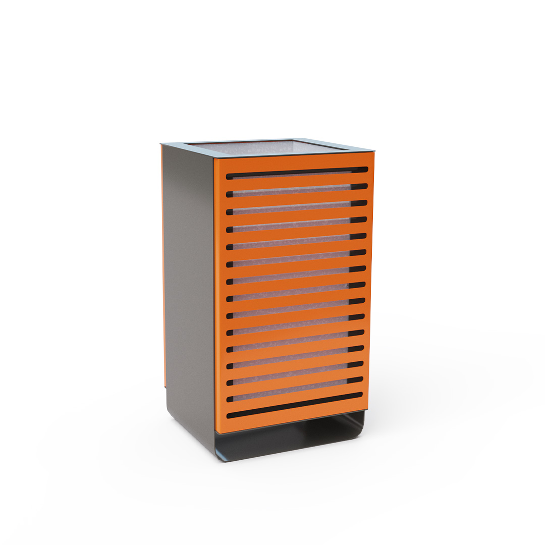 Dizajnový odpadkový kôš s objemom 60l vhodný nielen do exteriéru - parky, ihriská, ale aj do interiéru - nákupné centrá, letiskové haly, vstupné haly a pod.