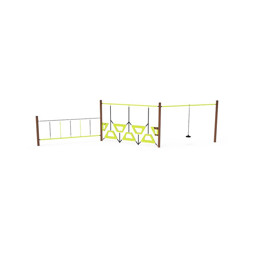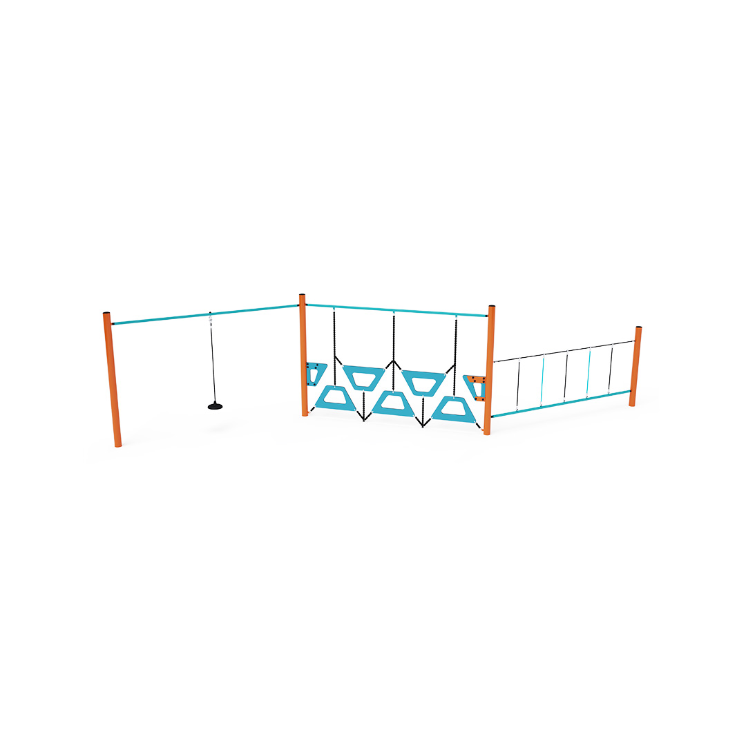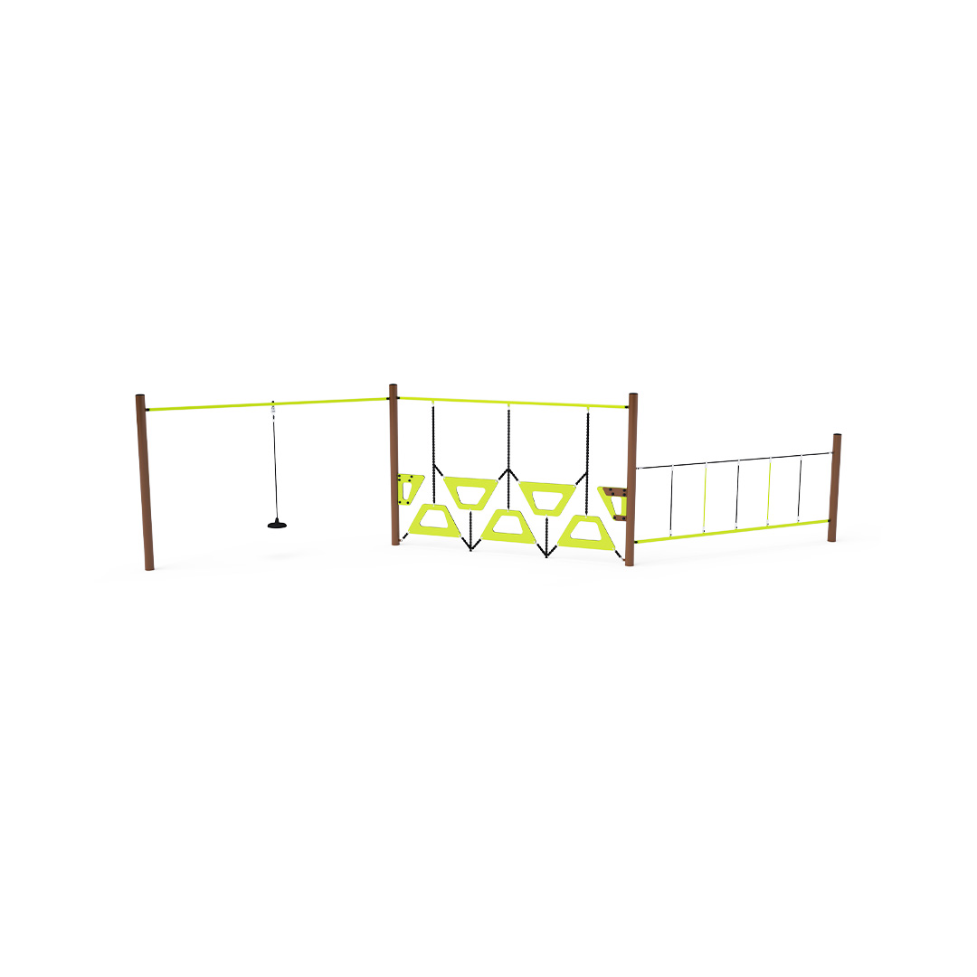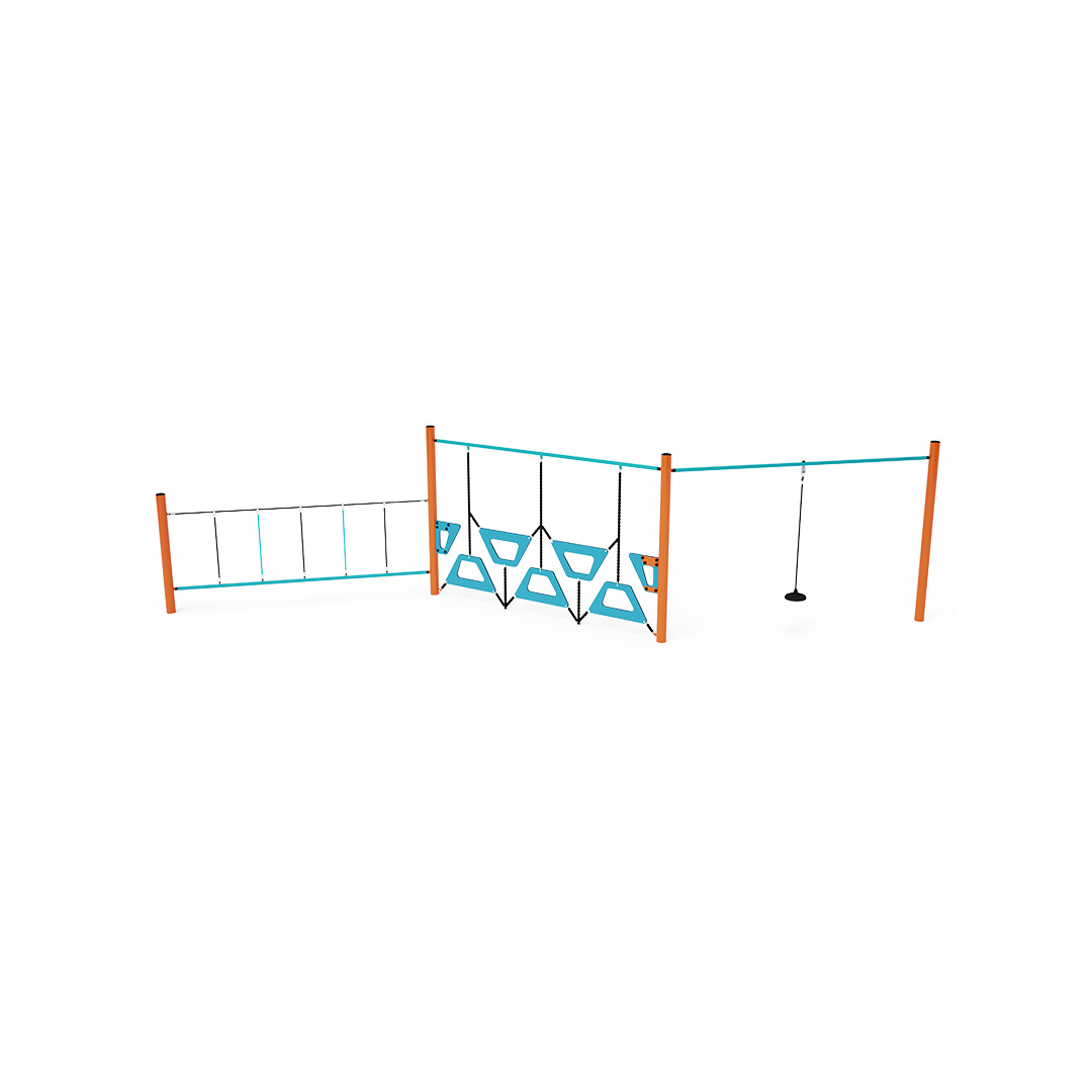 Opičia dráha vytvorená kombináciou troch častí. Prvá časť s visiacim lanom, jednoduchý ale všestranný prvok. Druhá časť vytvorená stupačkami voľne zavesenými jedna vedľa druhej. Tretia časť vhodná na rúčkovanie do strán. Dieťa síce stojí na pevnej tyči, ale držať sa musí lana, ktoré už také pevné nie je. Prekonávanie tohto herného prvku je nie len zábava, ale aj námaha. Herný prvok je vyrobený zo žiarovo zinkovanej ocele s kvalitnou povrchovou úpravou, spoje sú nerezové a zakryté plastovými krytkami pre zvýšenie bezpečnosti a životnosti spojov. Laná sú vyrobené z polyesterových vlákien, ktoré sú vinuté okolo stredu. Táto konštrukcia lana zvyšuje jeho pevnosť a odolnosť proti mechanickému namáhaniu.