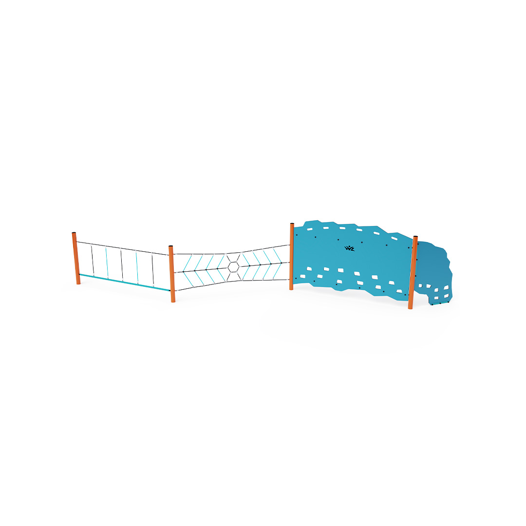 Opičia dráha vytvorená kombináciou troch častí. Prvá časť je vytvorená zvislou stenou. Druhá časť je vytvorená zvislou lanovou pavúčou sieťou preverí silu rúk každého dieťaťa. Tretia časť je vhodná na rúčkovanie do strán. Dieťa síce stojí na pevnej tyči, ale držať sa musí lana, ktoré už také pevné nie je. Prekonávanie tohto herného prvku je nie len zábava, ale aj námaha. Herný prvok je vyrobený zo žiarovo zinkovanej ocele s kvalitnou povrchovou úpravou, spoje sú nerezové a zakryté plastovými krytkami pre zvýšenie bezpečnosti a životnosti spojov. Laná sú vyrobené z polyesterových vlákien, ktoré sú vinuté okolo stredu. Táto konštrukcia lana zvyšuje jeho pevnosť a odolnosť proti mechanickému namáhaniu. Samotný polyester má veľa kladných vlastností. Je odolný voči mikroorganizmom, poveternostným vplyvom, rýchlo schne po daždi, je stálofarebný a vyznačuje sa vysokou pevnosťou