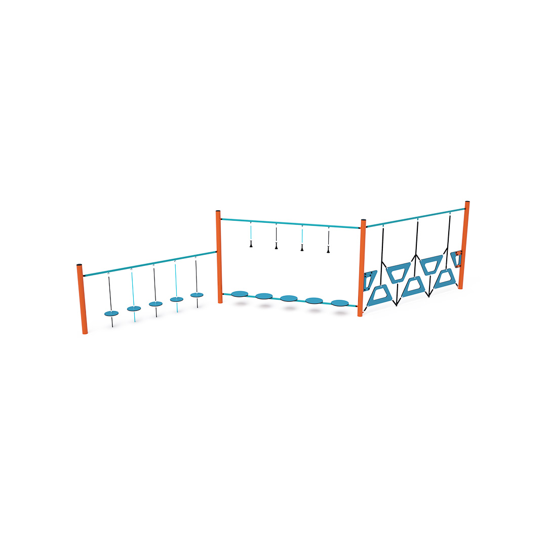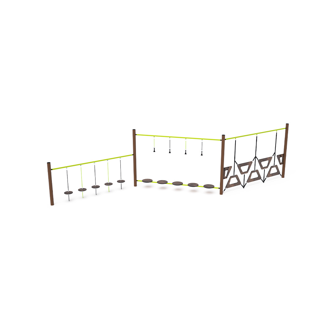 Opičia dráha vytvorená kombináciou troch častí - lichobežníkovej steny, balančnými nášľapmi s voľne zavesenými rúčkami a balančnými diskami. Prechádzať z jedného voľne visiaceho kameňa na ten nasledujúci nie je vôbec ľahké. Prekonávanie tohto herného prvku je nie len zábava, ale aj námaha. Herný prvok je vyrobený zo zinkovanej ocele s kvalitnou povrchovou úpravou - práškovým lakovaním, spoje sú nerezové a zakryté plastovými krytkami pre zvýšenie bezpečnosti a životnosti spojov. Laná sú vyrobené z polyesterových vlákien s oceľovým jadrom, ktoré sú vinuté okolo stredu. Táto konštrukcia lana zvyšuje jeho pevnosť a odolnosť proti mechanickému namáhaniu. Samotný polyester má veľa kladných vlastností. Je odolný voči mikroorganizmom, poveternostným vplyvom, rýchlo schne po daždi, je stálofarebný a vyznačuje sa vysokou pevnosťou.