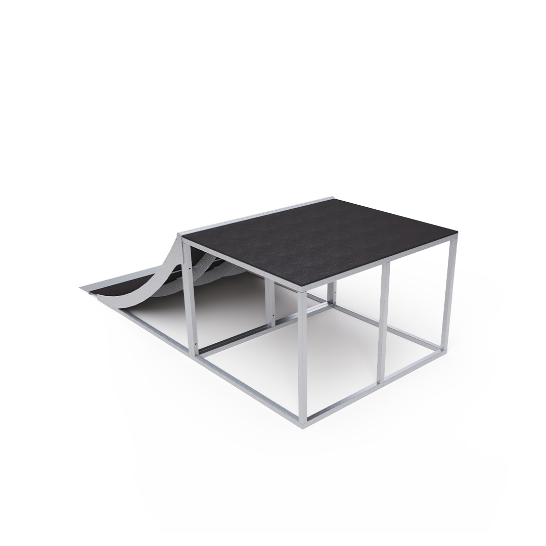 Materiál: Žiarovo-zinkovaná oceľ, vodeodolná preglejka, nerezový spojovací materiál