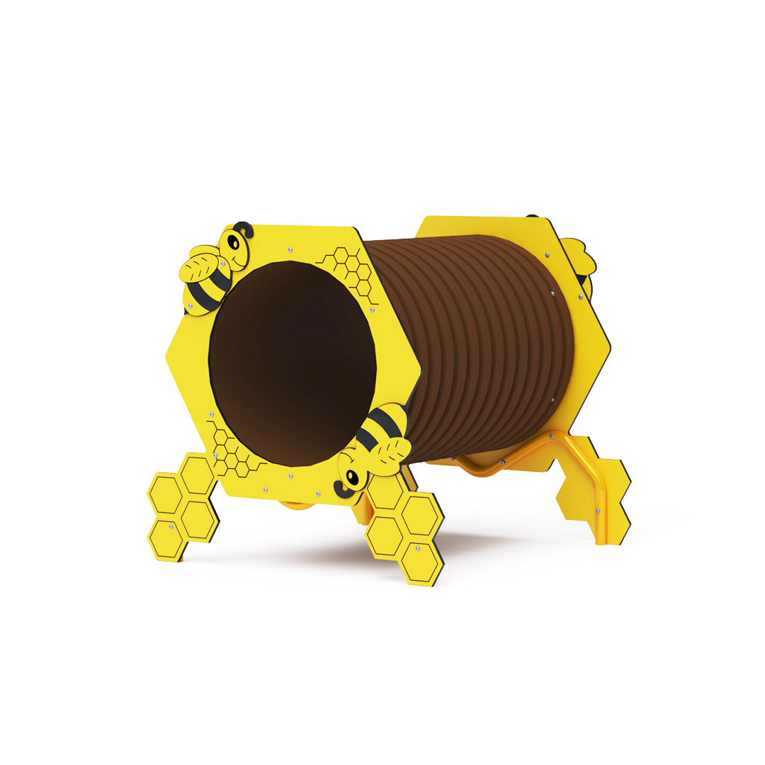 Herný prvok v designe včelieho úľu s plastovým tunelom je našim najmenším prevedením tejto série herných prvkov. Tematické prevedenie podporuje detskú fantáziu.