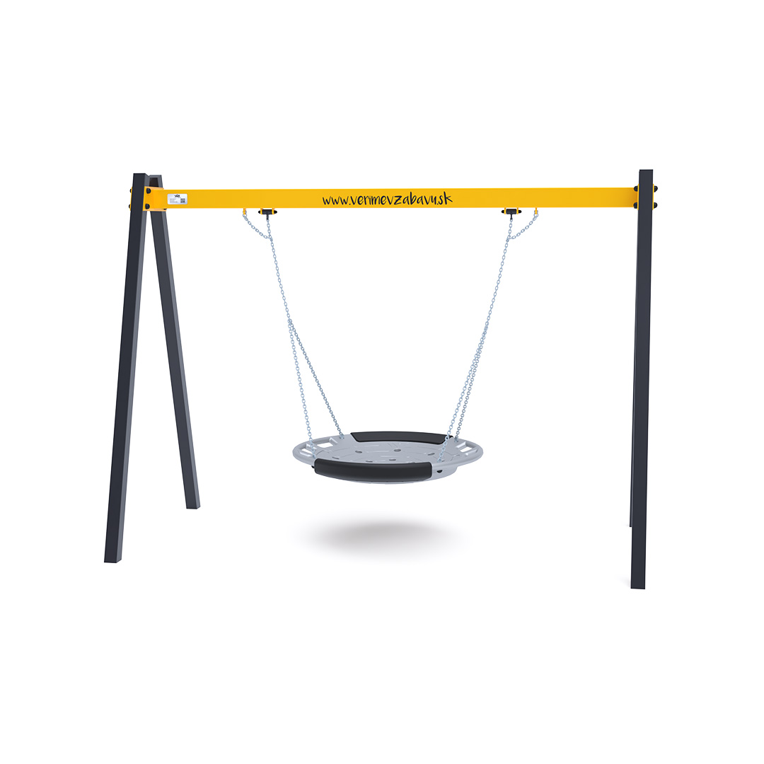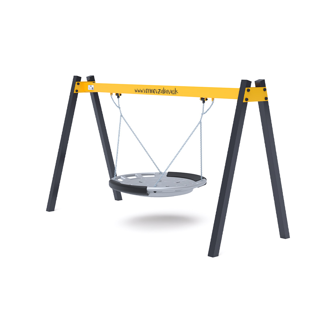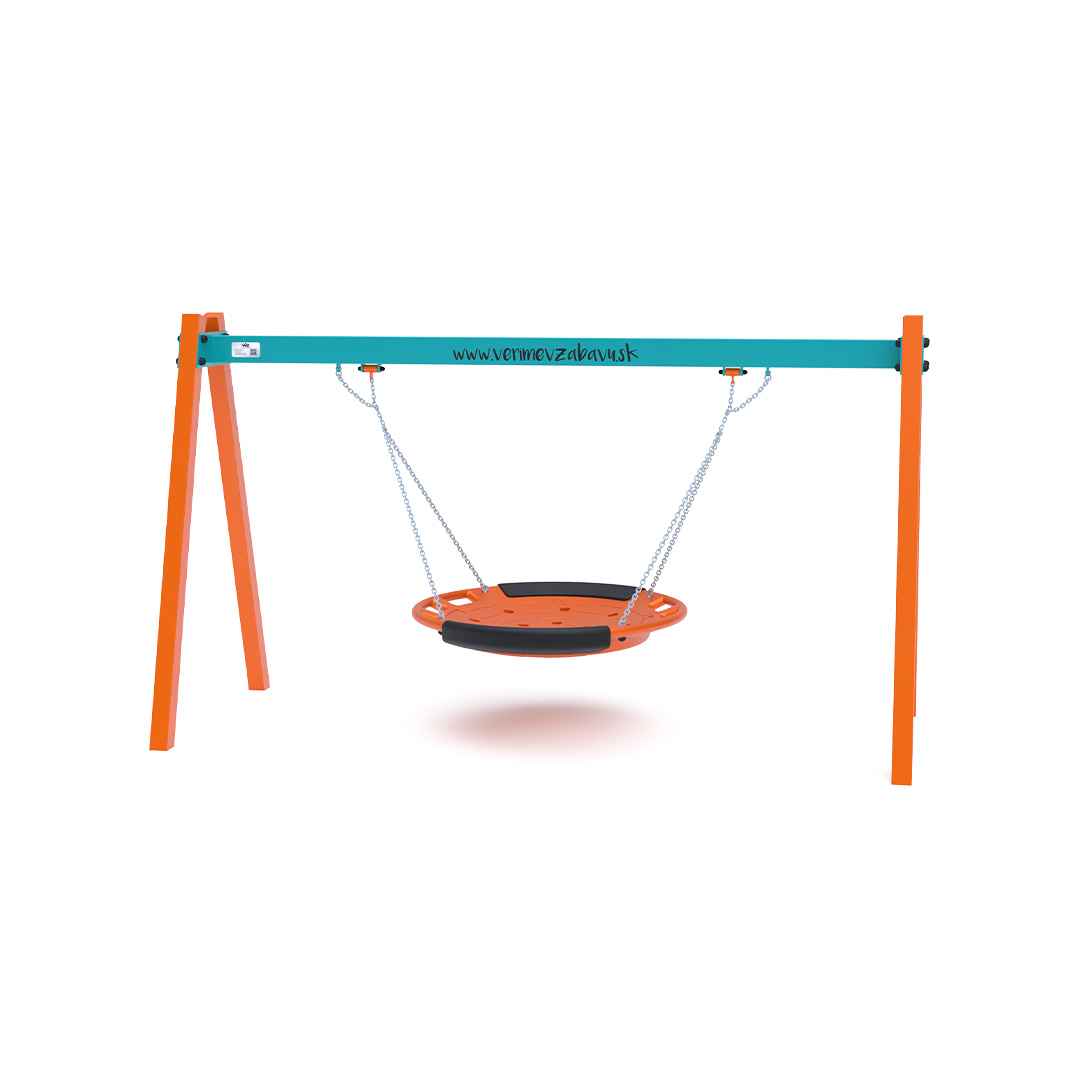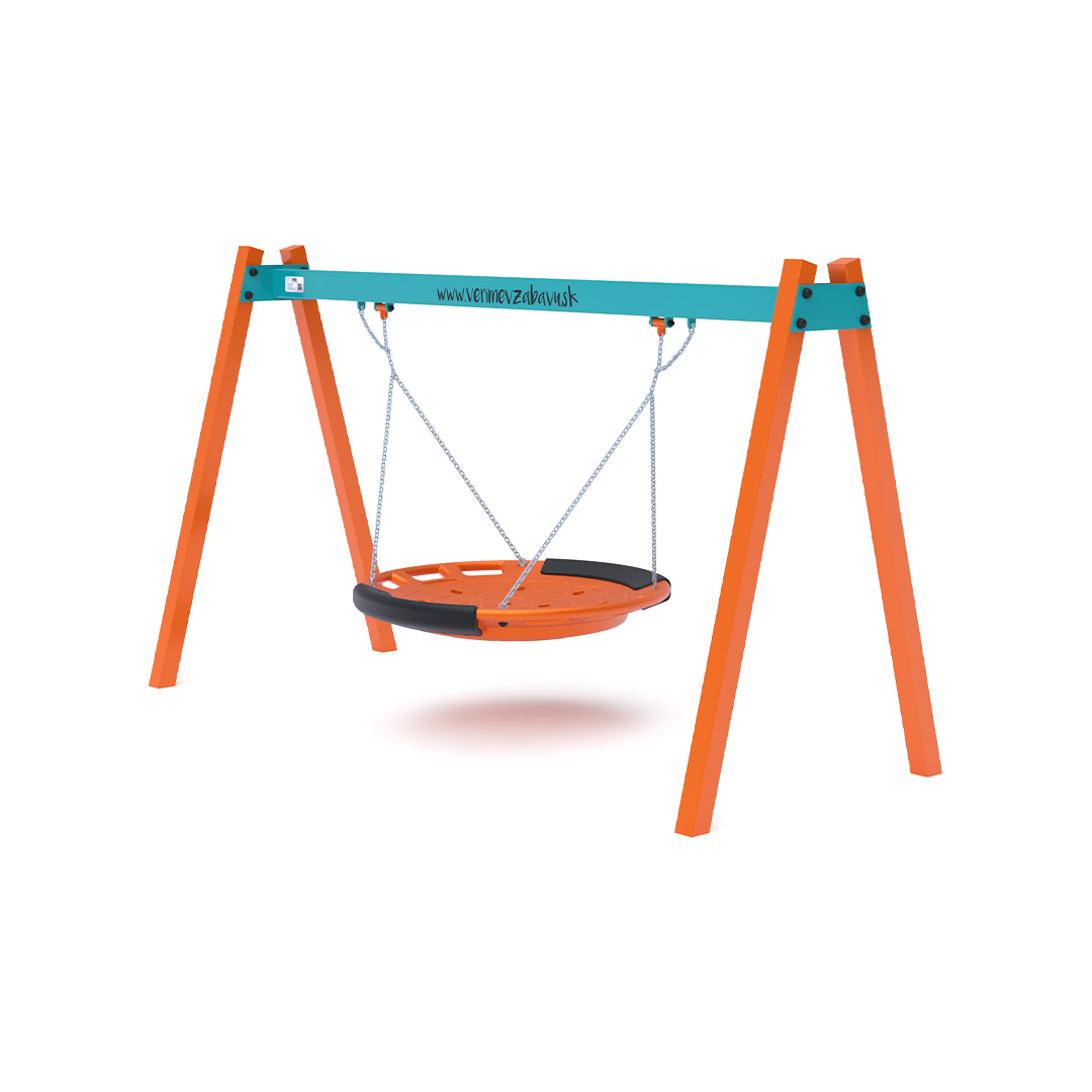 Visiaca hojdačka s hniezdom pre 5 detí je vyrobená zo žiarovo zinkovanej ocele, ktorá je upravená práškovou vypaľovanou farbou. Spojovacie materiály sú nerezové a zakryté plastovými krytkami pre zvýšenie životnosti a bezpečnosti. Ako dopadovú plochu je vhodné použiť zatrávňovaciu rohož.